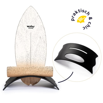 Grâce au support au sol stylé pour la planche et le rouleau, ton salon est rangé en un clin d'œil après l'entraînement. Le vrai bois de hêtre teinté est extrêmement robuste et assure ainsi une stabilité parfaite.